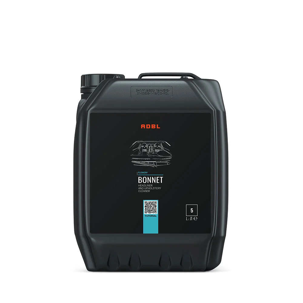 ADBL Bonnet to profesjonalny środek do czyszczenia podsufitki, tapicerki materiałowej oraz dywaników. Dzięki bezpiecznej i łatwej w użyciu formule, produkt skutecznie usuwa zabrudzenia, nie naruszając koloru ani faktury tkanin. Doskonale sprawdza się podczas odświeżania wnętrza samochodu, pozostawiając przyjemny, świeży zapach.