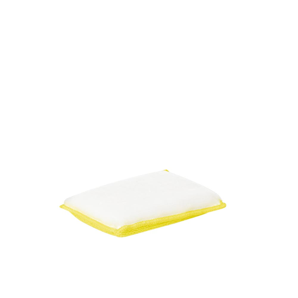 Jedna strona gąbki została wykonana z innowacyjnego włókna czyszczącego, które skutecznie usuwa nawet uporczywe zabrudzenia, jednocześnie nie powodując zarysowań. Druga strona to wysokiej jakości mikrofibra, delikatna i chłonna, idealna do finalnego przecierania oraz wykończenia powierzchni.