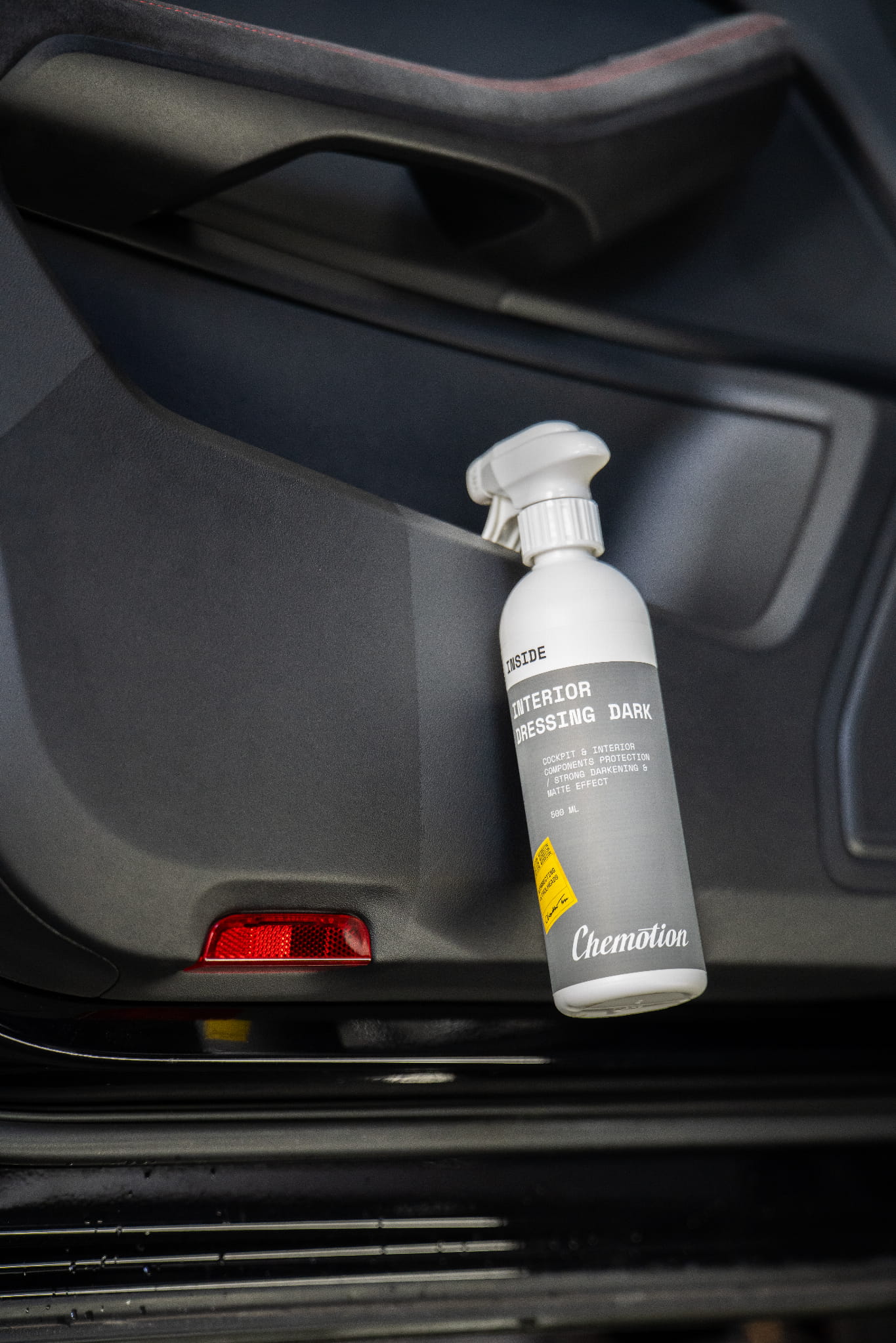 Chemotion Interior Dressing Dark to zaawansowany preparat polimerowy do pielęgnacji i konserwacji elementów wnętrza samochodu. Odświeża kokpit, plastiki i inne tworzywa sztuczne, nadając im wyraźne przyciemnienie oraz naturalne, matowe wykończenie. Sprawdzi się zarówno w nowoczesnych autach, jak i w samochodach klasycznych z wypłowiałymi elementami wnętrza.